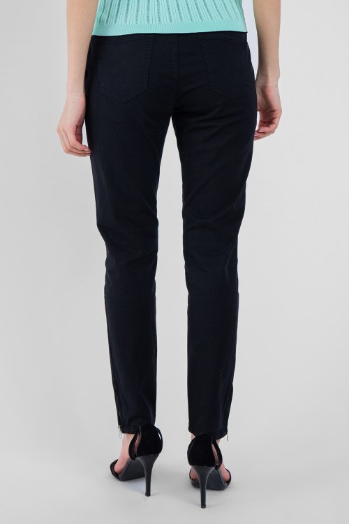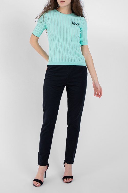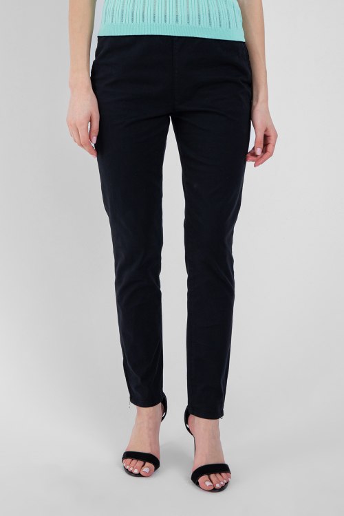 Женские темно-синие брюки из хлопкового микса от Pinko (Пинко). Полная длина, застегиваются на застежку молнию сбоку изделия, высокая посадка пояса, задние карманы.