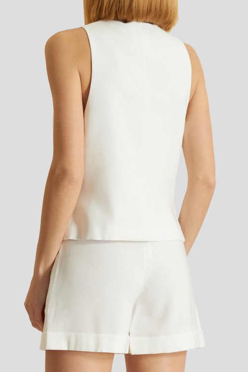 Женский белый жилет из вискозы от Federica Tosi (Федерика Тоси). Модель без рукавов, V-образный вырез, застежка на пуговицы, классическая длина