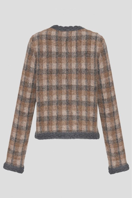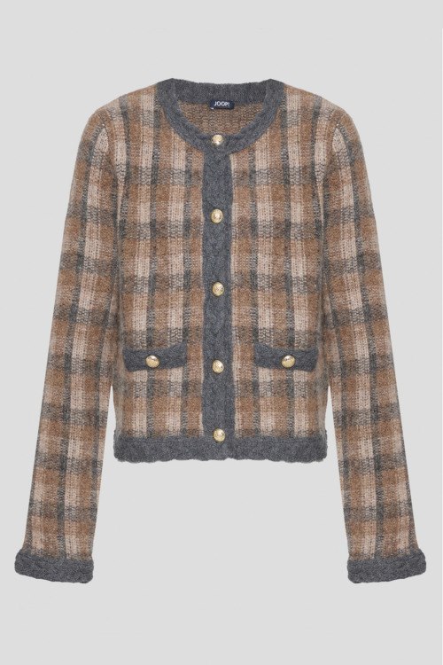 Детали: Женский бежевый шерстяной кардиган от Joop! (Йооп!). Клетка по всей поверхности, круглый вырез горловины, застежка на пуговицы, вязаные манжеты и нижний край. Длина рукава: длинный, для размера 38 - 66 см, обхват груди: для размера 38 - 98 см, обхват талии: для размера 38 - 98 см, длина изделия по среднему шву спинки от горловины: для размера 38 - 49 см