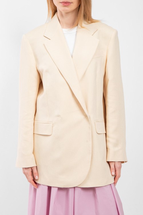 Женский бежевый жакет Peonie из вискоза и льна от Max Mara Weekend (Макс Мара Викенд). Отложной воротник, застежка на пуговицу, длинные рукава, карман с клапаном.