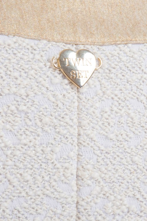 Женский бежевый жакет из вискозного микса от TWINSET (Твинсет). Модель с рукавом 3/4. круглый вырез горловины. без воротника, застегивается на один крючок, контрастная отделка, нашивка с логотипом бренда.