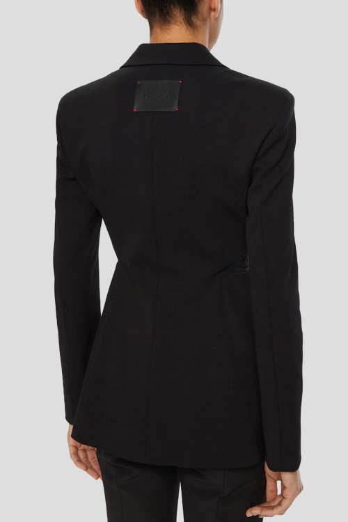 Детали: Женский черный трикотажный жакет Azera от Hugo Boss (Хуго Босс). Отложной воротник, три кармана, нашивка с логотипом на спине, застежка-молния, приталенный фасон, удлиненная длина