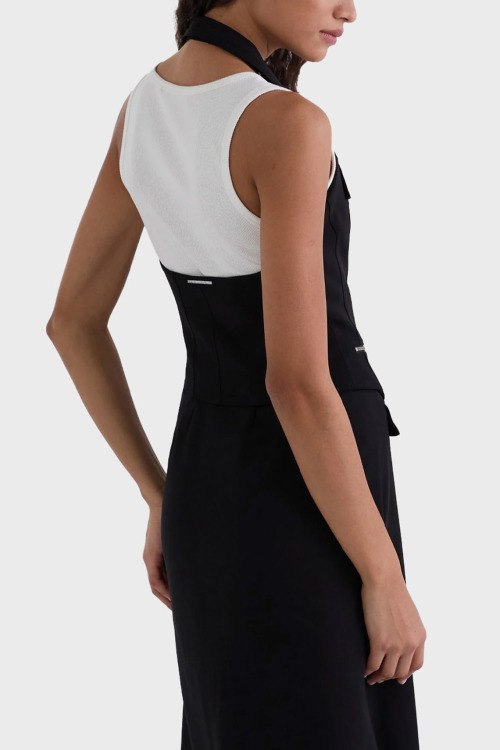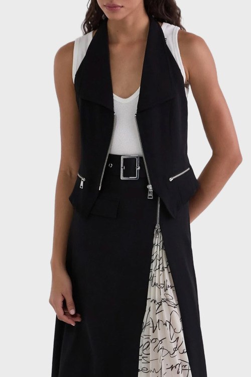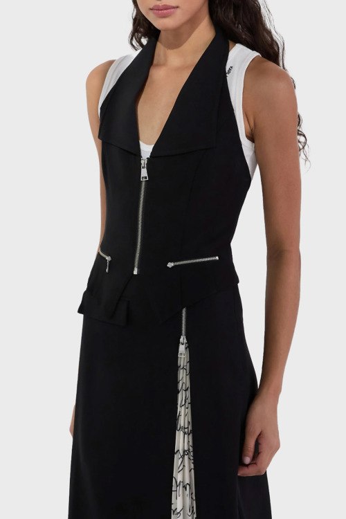 Детали: Женский черный жилет от Karl Lagerfeld (Карл Лагерфельд). Модель без рукавов, V-образный вырез, карман на молнии, застежка-молния, вырез на спине