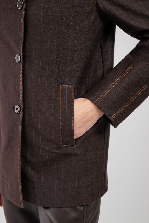 Женский темно-коричневый хлопковый жакет Cavallo от Max Mara (Макс Мара). Тонкая полоска по всей поверхности, отложной воротник, застежка на три пуговицы, боковые карманы, удлиненная длина.
