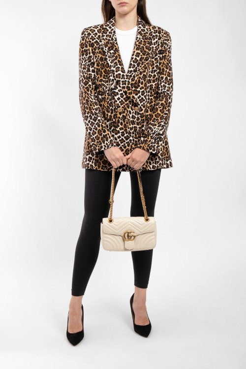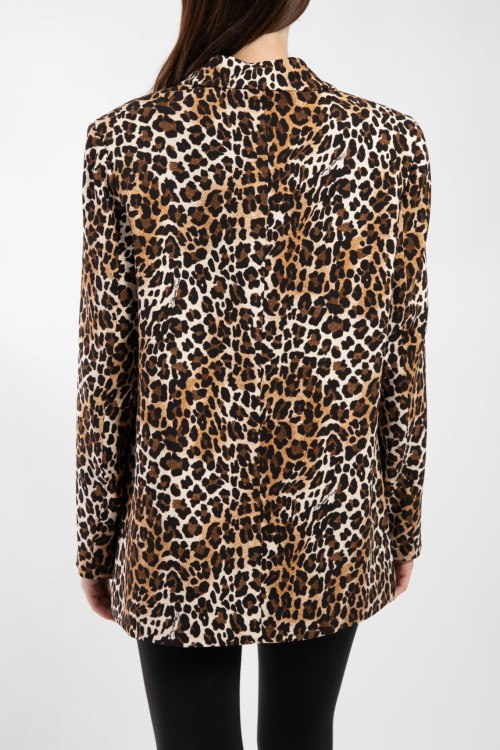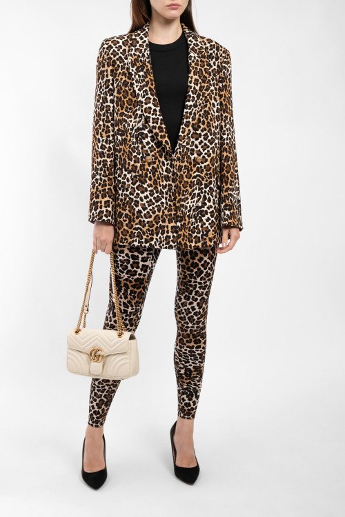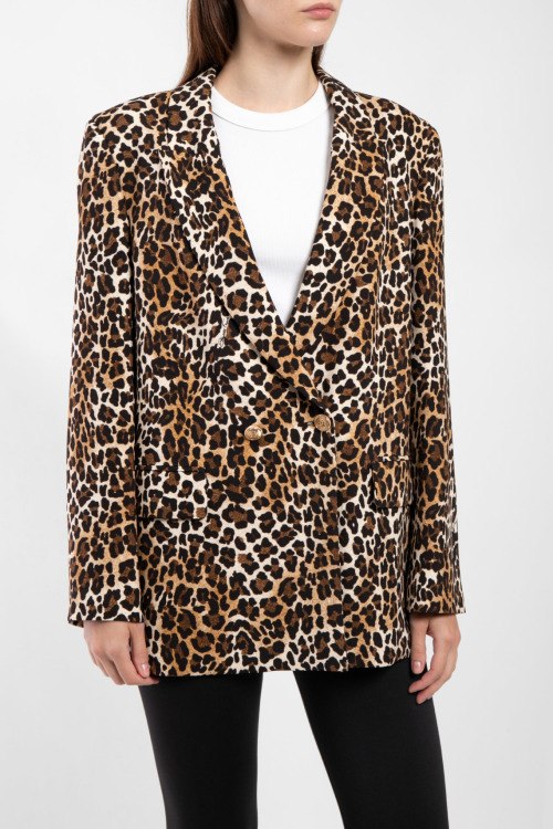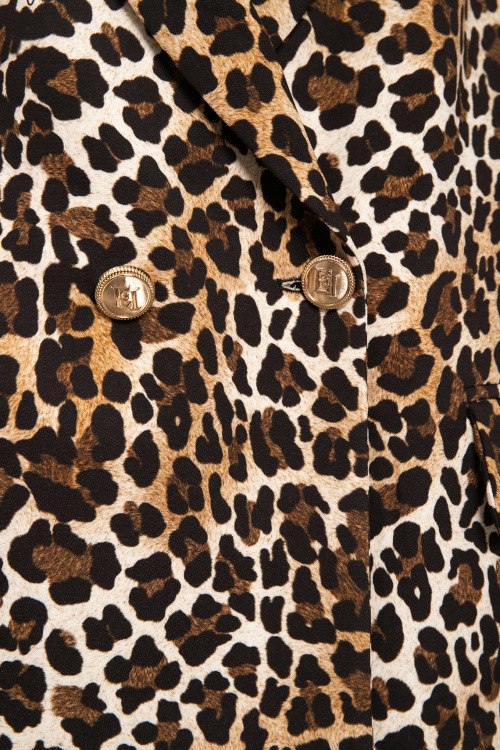 Детали: Женский леопардовый жакет из вискозного микса от Elisabetta Franchi (Елизабетта Франчи). Двубортная модель, V-образный вырез горловины, отложной воротник, застежка на пуговицы, дизайн с леопардовым принтом, длинные рукава, прорезные карманы с клапаном