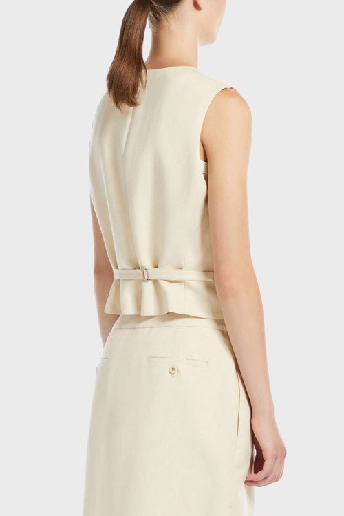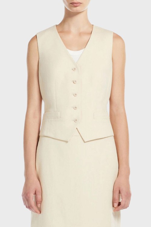 Детали: Женский жилет из вискозы и льна молочного оттенка Marella Emme by Marella от Max Mara Weekend (Макс Мара Викенд). V-образный вырез, застежка на пуговицы, классическая длина