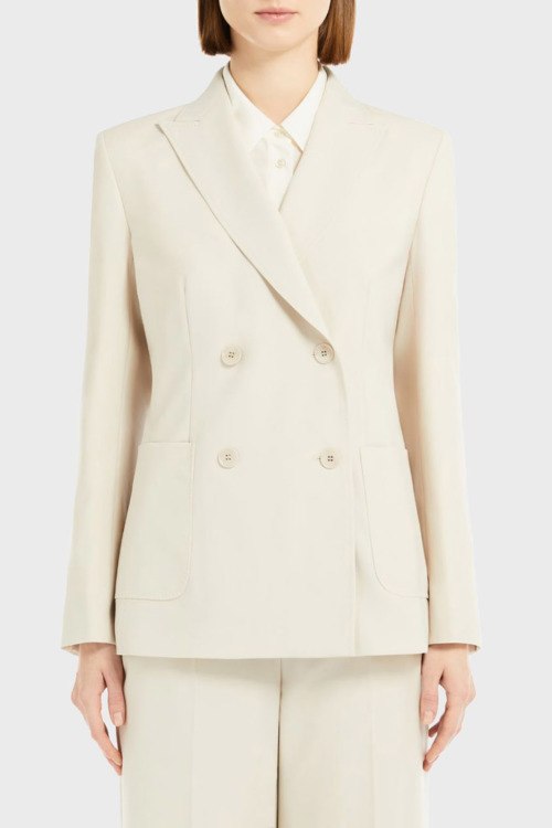 Детали: Женский шерстяной жакет молочного оттенка Nervoso от Max Mara Weekend (Макс Мара Викенд). Двубортный фасон, отложной воротник, два кармана, застежка на две пуговицы, классическая длина