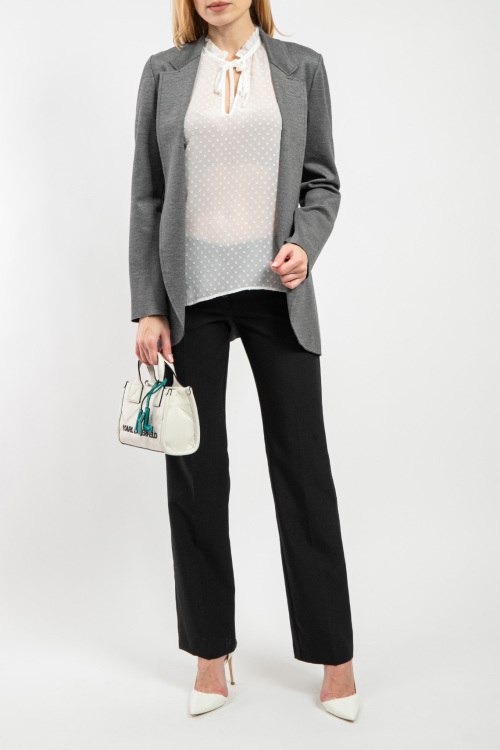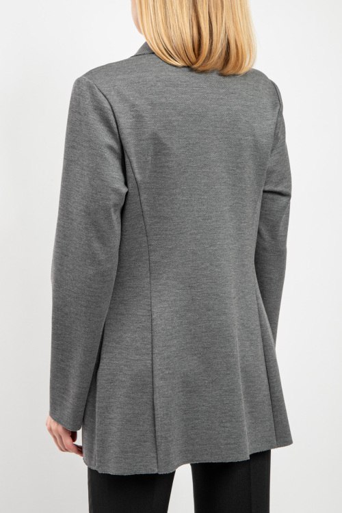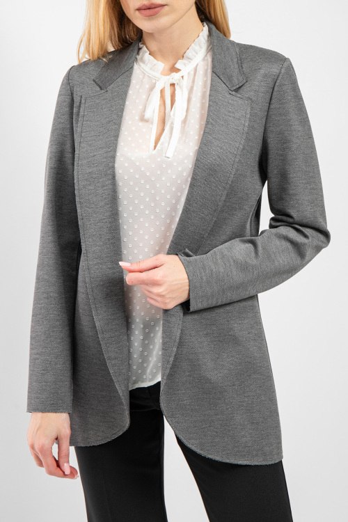 Женский серый трикотажный жакет от Barbara Alvisi (Барбара Алвиси). Отложной воротник с заостренными лацканами, глубокий V-образный вырез, удлиненная длина.
