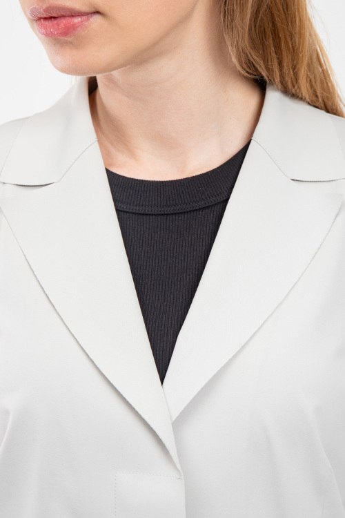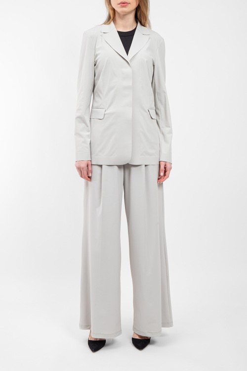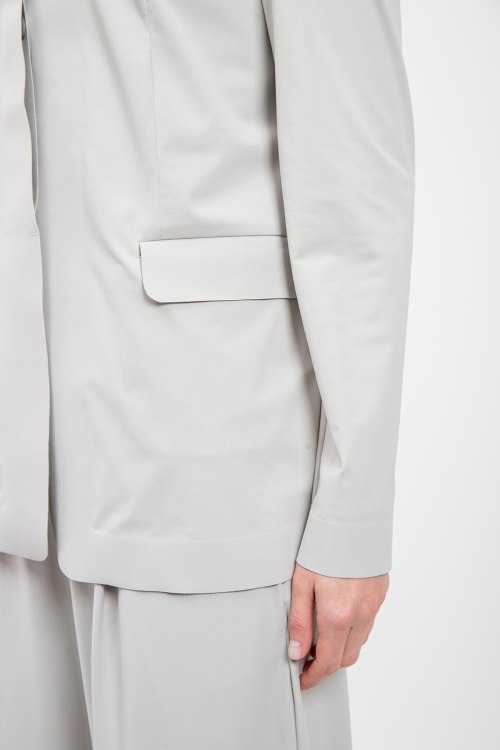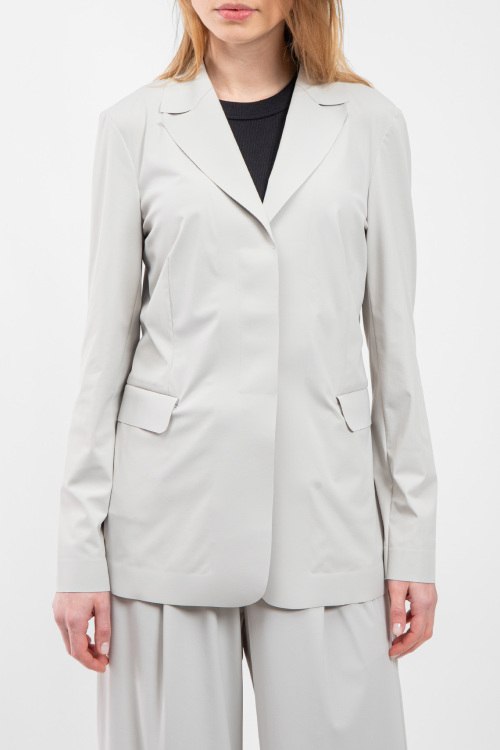 Женский серый жакет Gelada из полиамида и эластана от Max Mara Weekend (Макс Мара Викенд). Классический воротник, застежка на пуговицы, длинные рукава, прорезные карманы с клапаном.