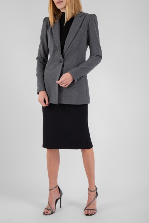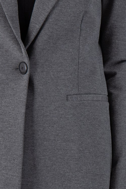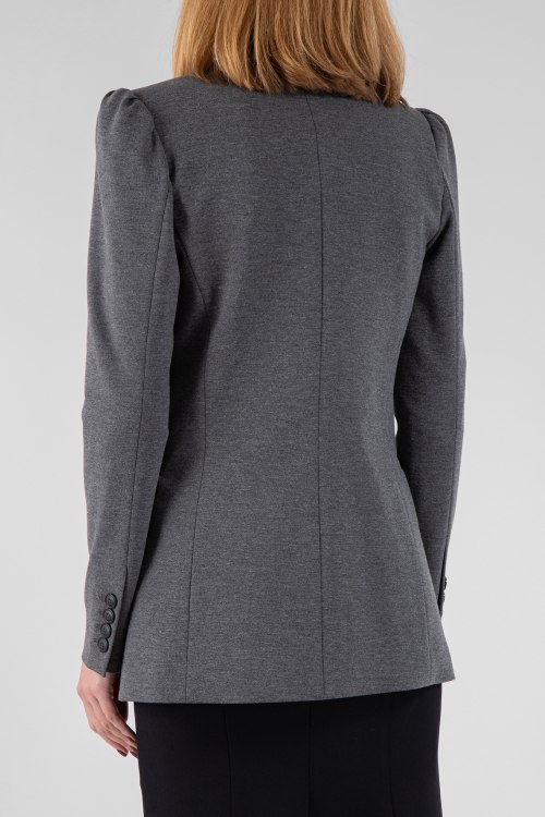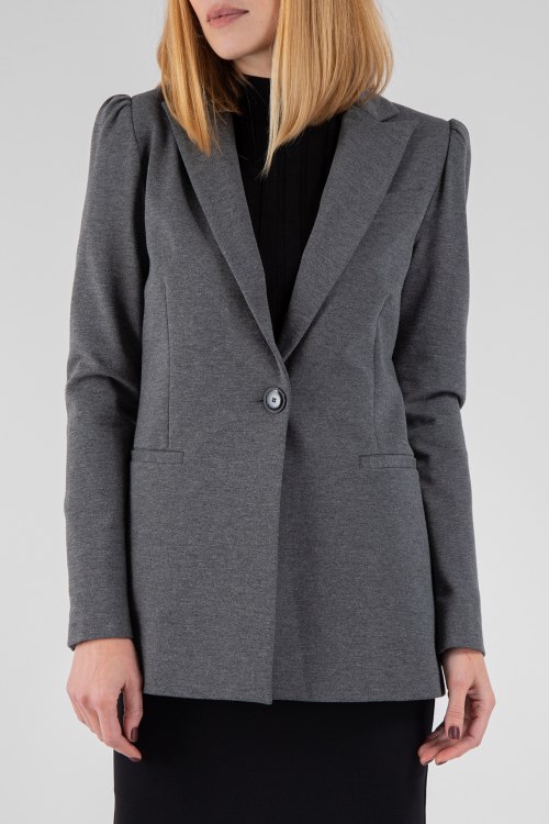 Женский серый жакет из вискозного микса от Pinko (Пинко). Классический воротник, передние карманы, застегивается на одну пуговицу.