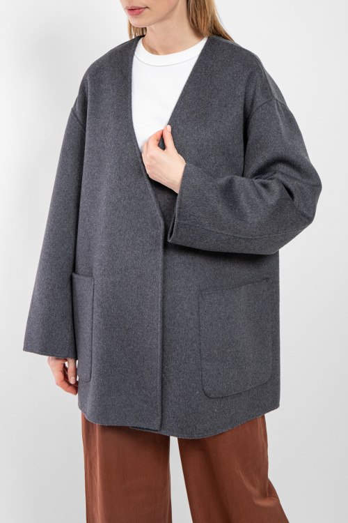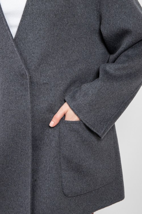Женский темно-серый жакет из шерсти и полиэстера от Vicolo (Виколо). Модель oversize, V-образный вырез горловины, застежка на кнопки, приспущенная линия плеча, длинные рукава, накладные карманы. Замеры для размера S: Длина: 81см, ширина по груди: 58 см, ширина по талии: 60 см, ширина по бедрам: 62 см, длина рукава по внутреннему шву: 38 см, ширина рукава: 21см.