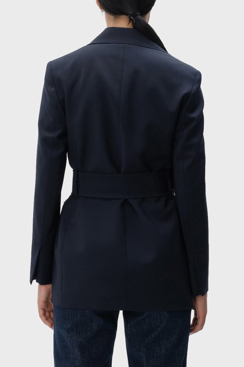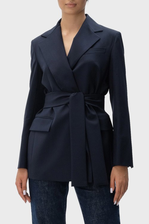Детали: Женский темно-синий шерстяной жакет Teso от Max Mara Weekend (Макс Мара Викенд). Отложной воротник с заостренными лацканами, три кармана, в талии с поясом, удлиненная длина