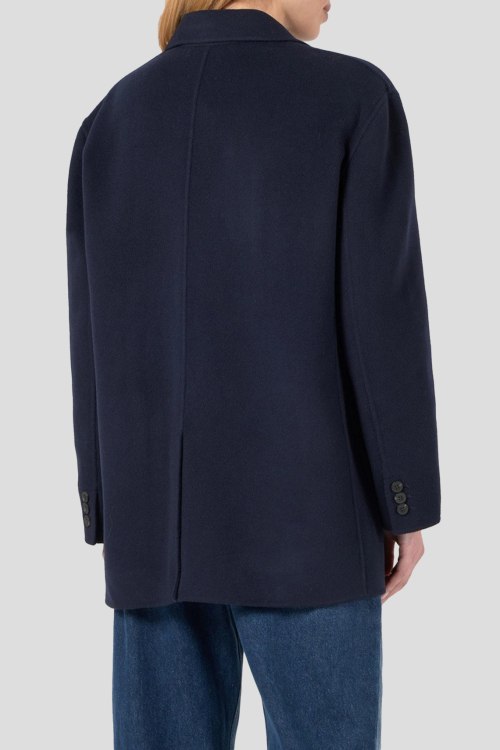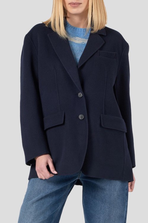 Детали: Женский темно-синий жакет из шерсти от Max Mara (Макс Мара). Отложной воротник, застежка на пуговицы, длинные рукава, накладные карманы с клапаном
