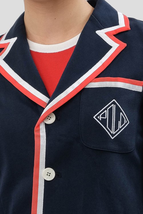 Детали: Женский темно-синий хлопковый жакет от Ralph Lauren (Ральф Лорен). Контрастная отделка, три накладных кармана, застежка на три пуговицы, классическая длина