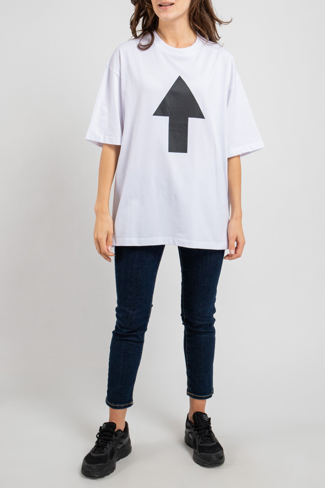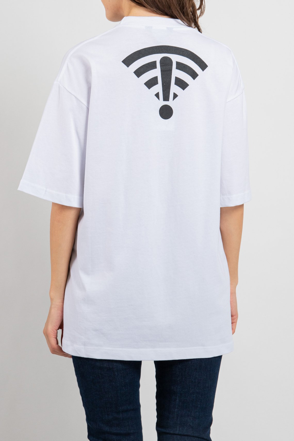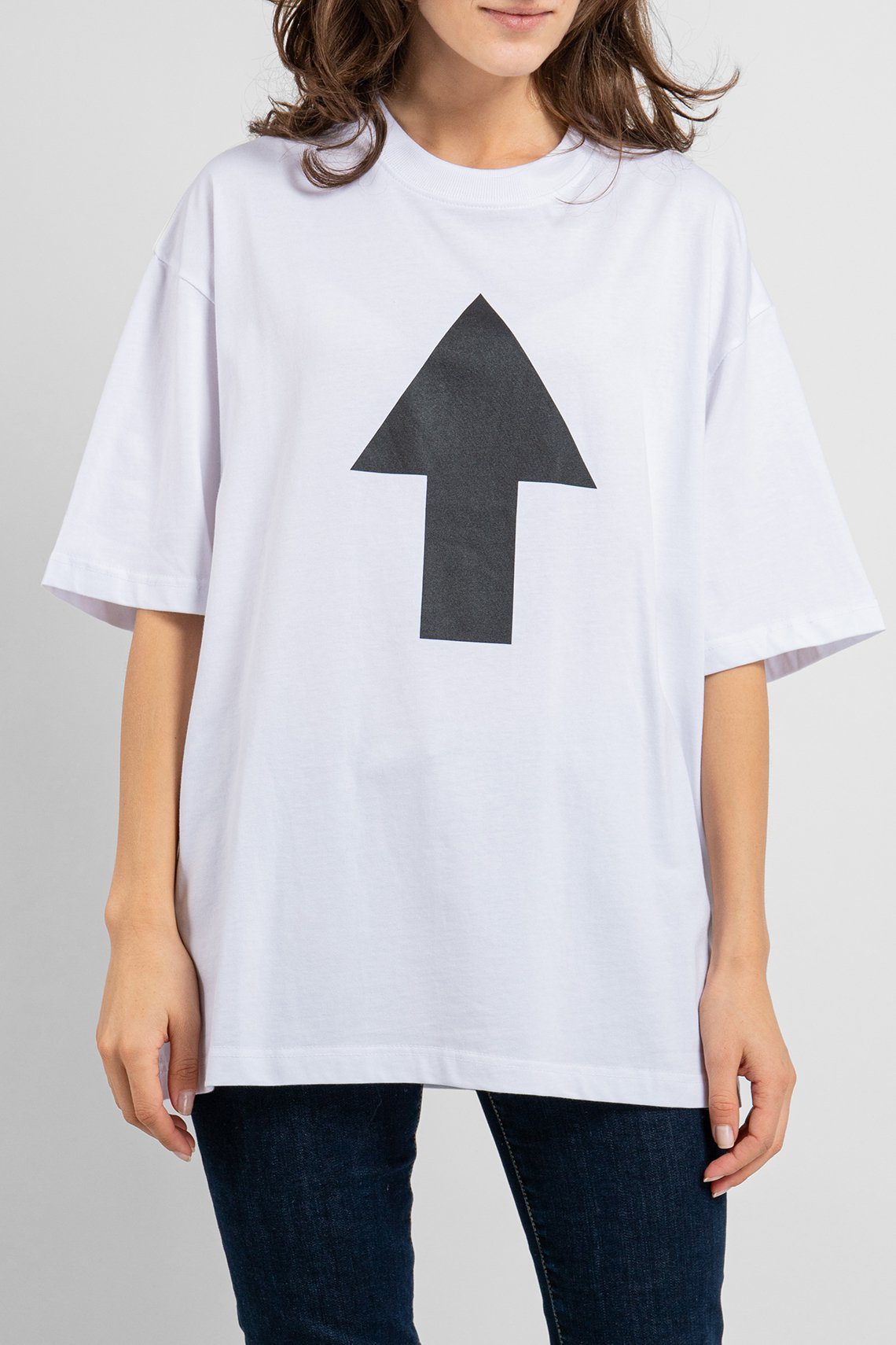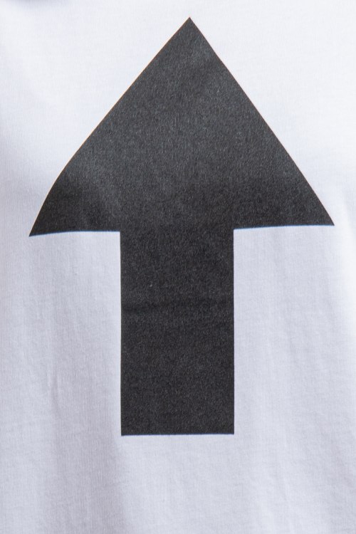 Женская белая футболка из хлопка от Balenciaga (Баленсиага). Дизайн с принтом спереди и на спине, круглый вырез горловины, короткие рукава, ровный подол