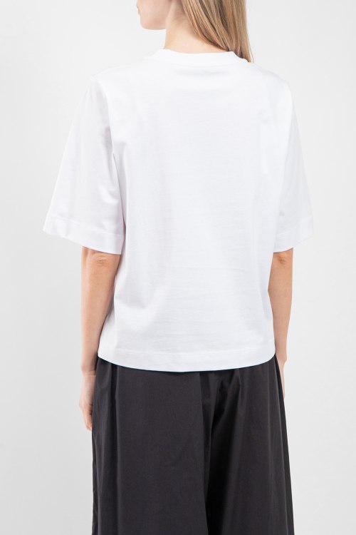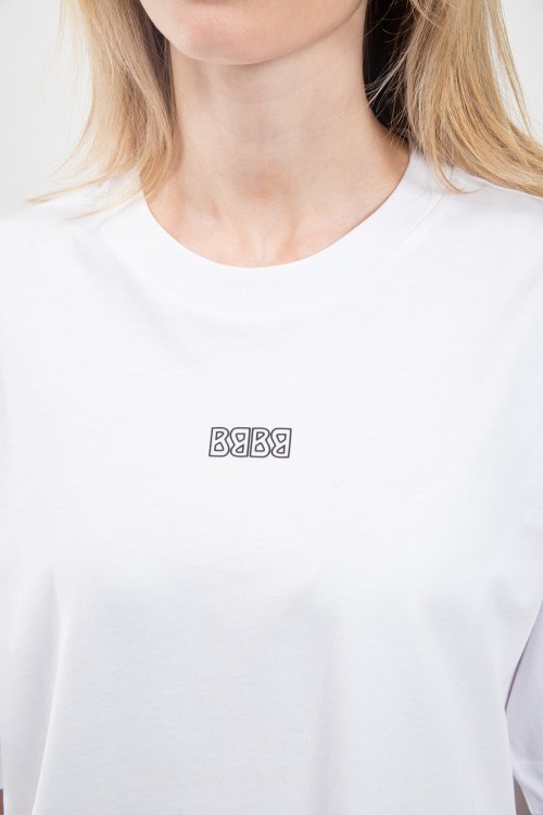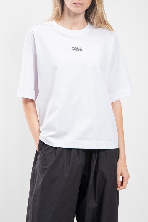 Женская белая хлопковая футболка Dorothy от Bogner (Богнер). Логотип на груди, круглый вырез горловины, короткий рукав, классическая длина.