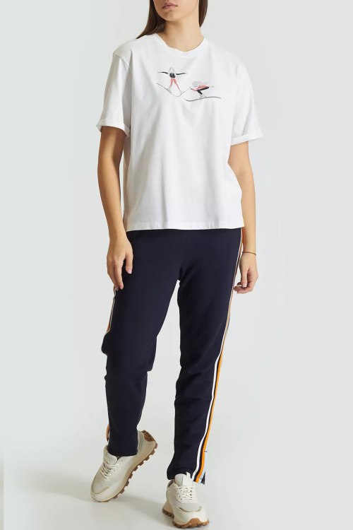 Детали: Женская белая хлопковая футболка Cabela от Bogner (Богнер). Принт на груди, круглый вырез горловины, короткий рукав, классическая длина