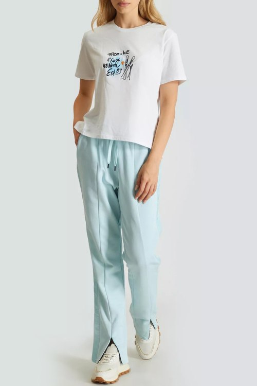 Детали: Женская белая хлопковая футболка Lotte от Bogner (Богнер). Принт на груди, круглый вырез горловины, короткий рукав, классическая длина