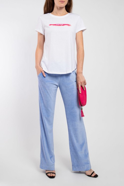 Женская белая футболка из хлопка от Bogner Fire+Ice (Богнер Фаер+Айс). Круглый вырез горловины, короткие рукава, принт с логотипом бренда.
