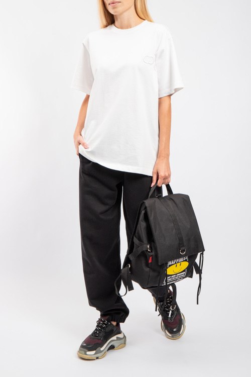 Женская белая хлопковая футболка от Christian Dior (Кристиан Диор). Фасон oversize, логотип на груди и на спине, круглый вырез горловины, короткий рукав, удлиненная длина.