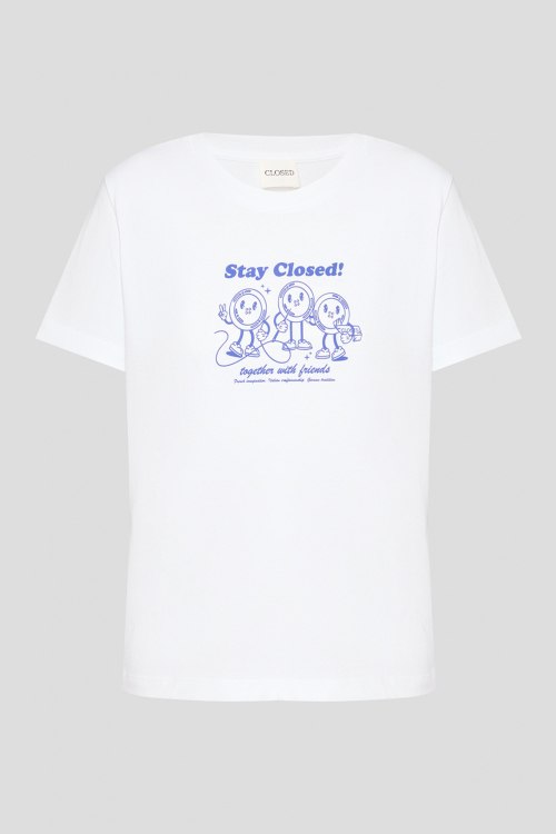 Детали: Женская белая хлопковая футболка от Closed (Клоузед). Принт на груди, круглый вырез горловины, короткий рукав, классическая длина. Длина рукава: короткий, для размера S - 19 см, обхват груди: для размера S - 90 см, обхват талии: для размера S - 90 см, длина изделия по среднему шву спинки от горловины: для размера S - 58 см