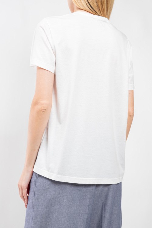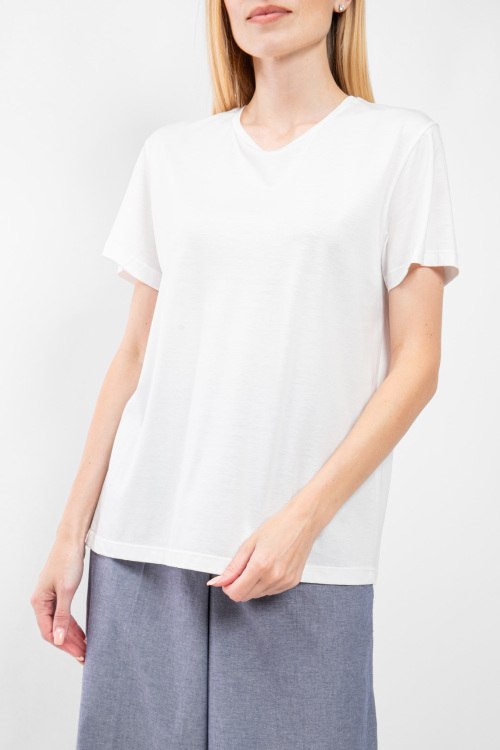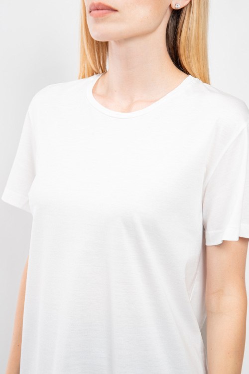 Женская белая футболка из хлопка и модала от Clothe (Клозе). Круглый вырез горловины, короткий рукав, классическая длина. Размер вещи на фото: S, длина спереди: 66 см, ширина по груди: 51 см, ширина по талии: 51 см, длина рукава: 7 см, ширина рукава: 18 см.