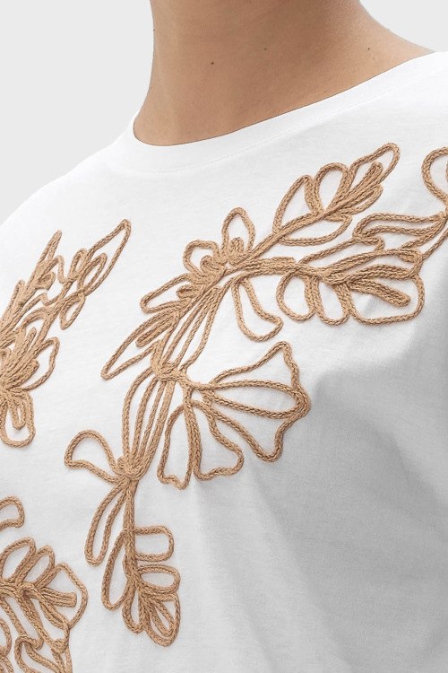 Детали: Женская белая хлопковая футболка от Ermanno Scervino (Эрманно Шервино). Цветочная вышивка, круглый вырез горловины, короткий рукав, классическая длина
