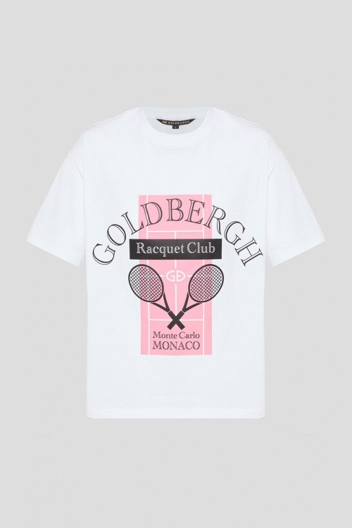 Детали: Женская белая хлопковая футболка от Goldbergh (Голдберг). Принт спереди, круглый вырез горловины, короткий рукав, классическая длина. Длина рукава: короткий, для размера S - 19,5 см, обхват груди: для размера S - 104 см, обхват талии: для размера S - 104 см, длина изделия по среднему шву спинки от горловины: для размера S - 59 см