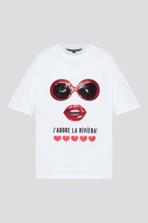 Детали: Женская белая хлопковая футболка от Goldbergh (Голдберг). Принт с пайетками, круглый вырез горловины, короткий рукав, классическая длина. Длина рукава: короткий, для размера S - 27 см, обхват груди: для размера S - 110 см, обхват талии: для размера S - 106 см, длина изделия по среднему шву спинки от горловины: для размера S - 71 см