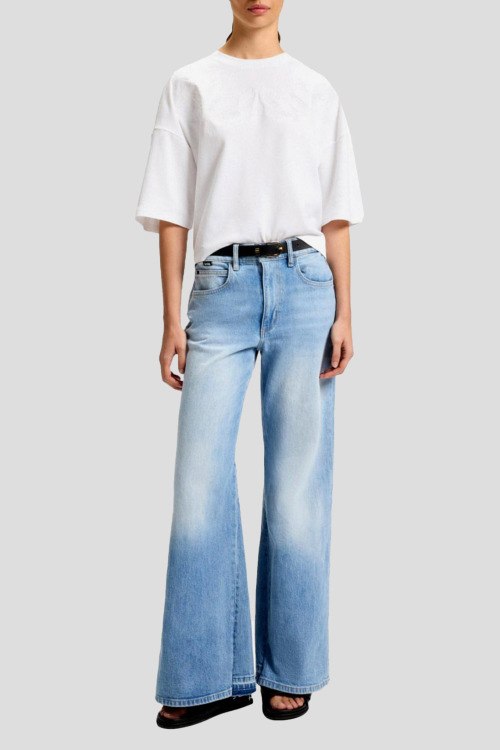 Детали: Женская белая футболка Еnesse из хлопка от Hugo Boss (Хуго Босс). Классическая длина, круглый вырез горловины, приспущенная линия плеча, короткие рукава, декорирована вышивкой спереди в тон изделия