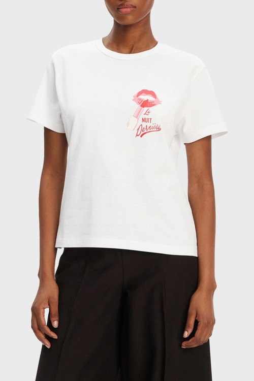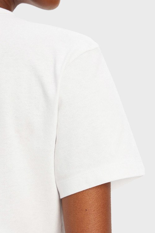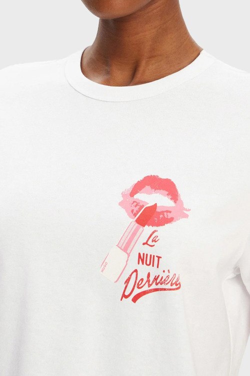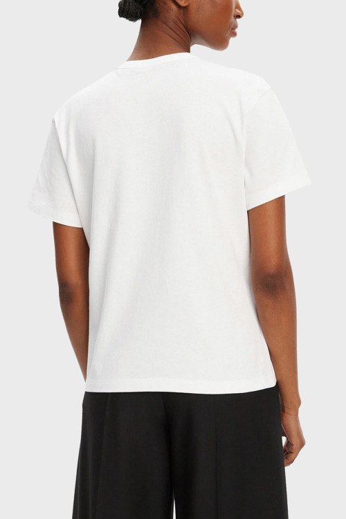 Детали: Женская белая хлопковая футболка Destrel от Hugo by Hugo Boss (Хуго бай Хуго Босс). Принт на груди, круглый вырез горловины, короткий рукав, классическая длина