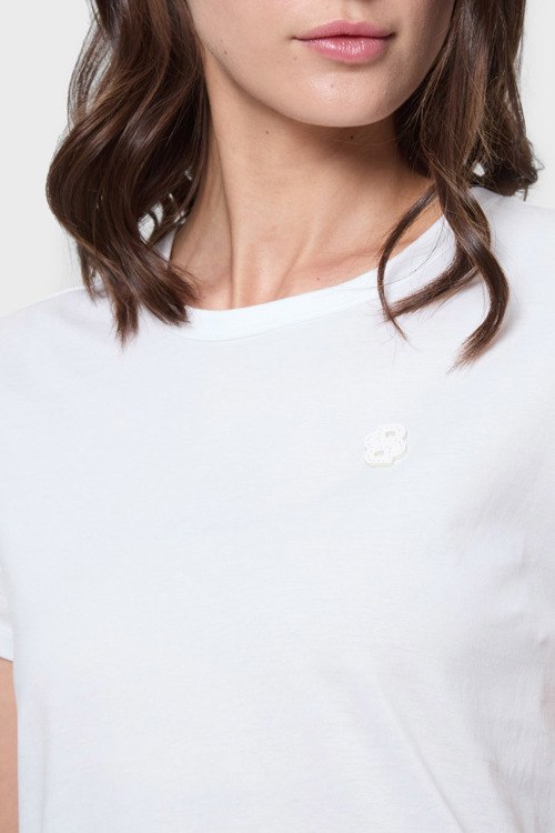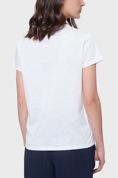 Детали: Женская белая хлопковая футболка Eventsa8 от Hugo Boss (Хуго Босс). Логотип на груди, круглый вырез горловины, короткий рукав, классическая длина