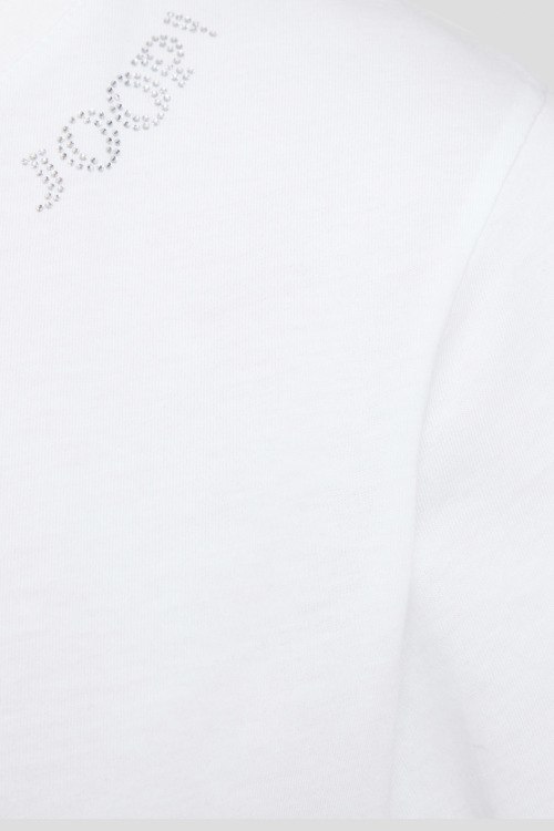 Детали: Женская белая хлопковая футболка от Joop! (Йооп!). Логотип из кристаллов, круглый вырез горловины, короткий рукав, классическая длина. Длина рукава: короткий, для размера 38 - 20 см, обхват груди: для размера 38 - 90 см, обхват талии: для размера 38 - 90 см, длина изделия по среднему шву спинки от горловины: для размера 38 - 61 см