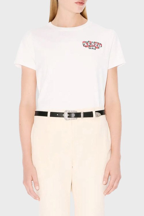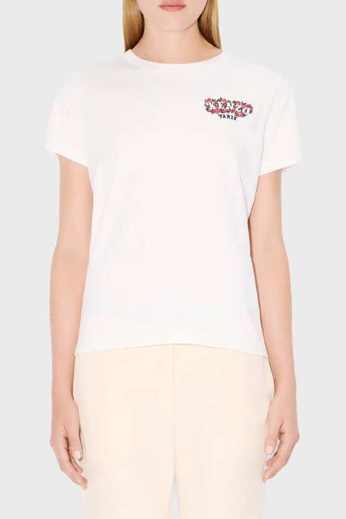 Детали: Женская белая хлопковая футболка Verdy Market от Kenzo (Кензо). Принт с логотипом на груди, круглый вырез горловины, короткий рукав, классическая длина