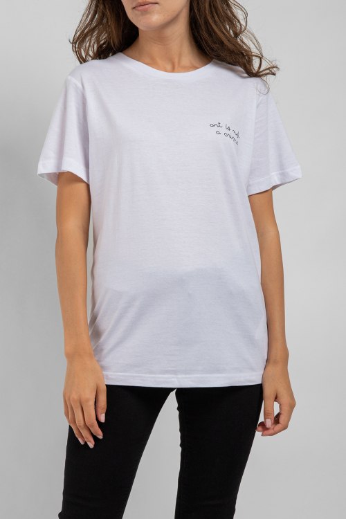 Женская белая хлопковая футболка от Ko Samui (Ко Самуи). Принт на спине, круглый вырез горловины, короткий рукав, классическая длина.