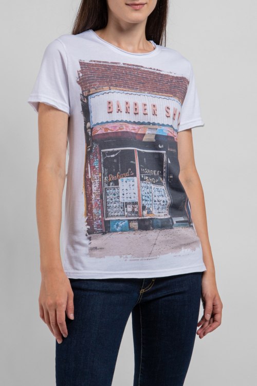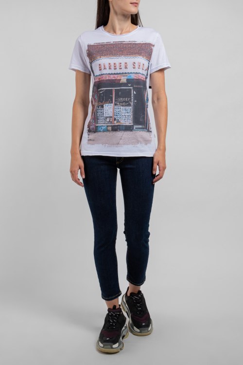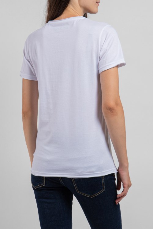 Женская белая футболка из хлопка от Ko Samui (Ко Самуи). Классическая длина. круглый вырез горловины, короткие рукава, спереди принт.