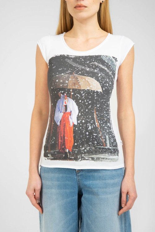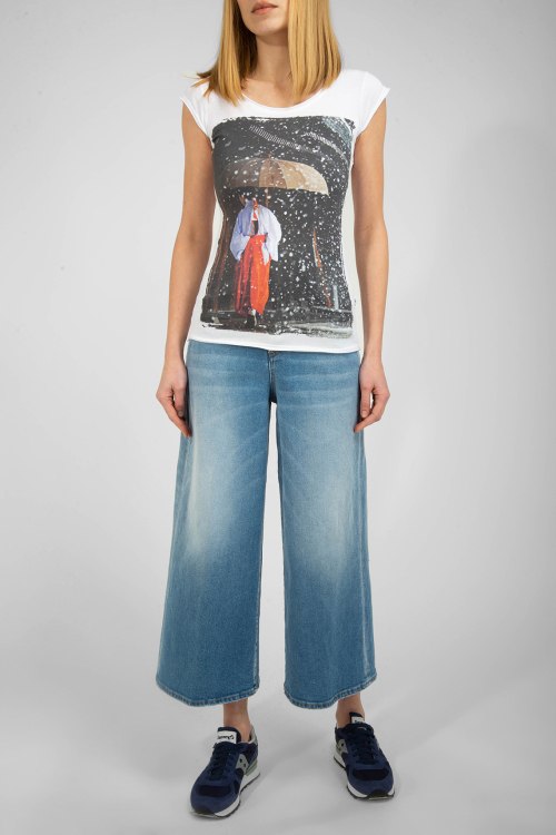 Детали: Футболка белого цвета из натурального хлопка. Однотонная футболка приталенного силуэта, короткий рукав, круглый вырез горловины, спереди украшена принтом, нашивка с фирменным логотипом бренда