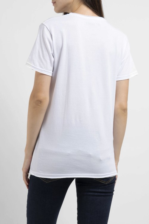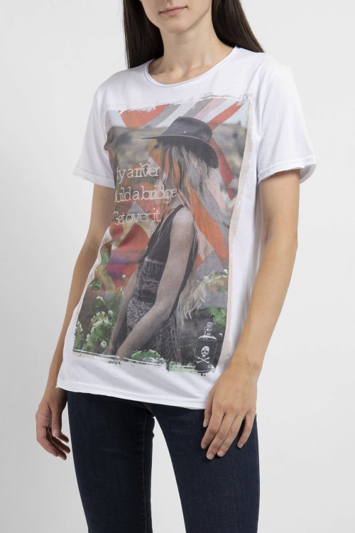 Женская белая футболка из хлопка от Ko Samui (Ко Самуи). Классическая длина, короткие рукава, круглый вырез горловины, спереди принт, ровный низ изделия.