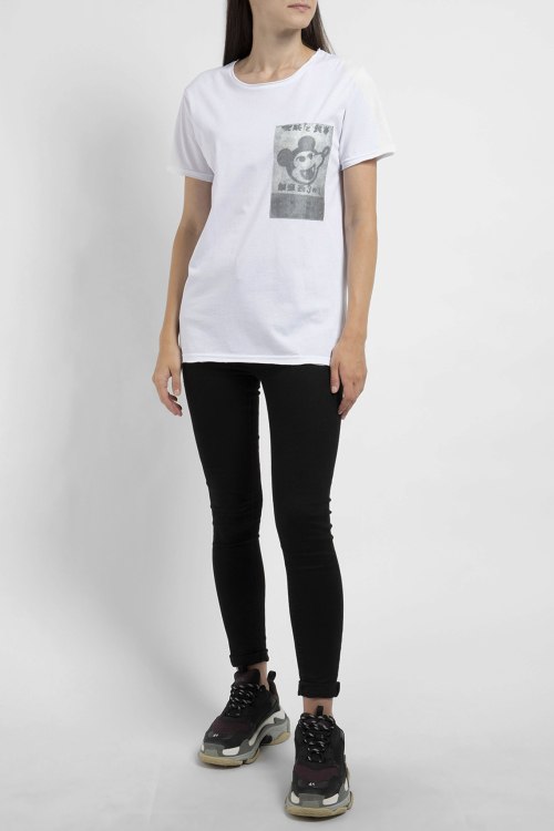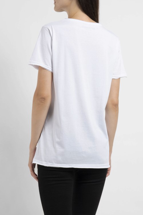 Женская белая футболка из хлопка от Ko Samui (Ко Самуи). Классическая длина, короткие рукава, круглый вырез горловины, спереди принт Dracula, ровный низ изделия.
