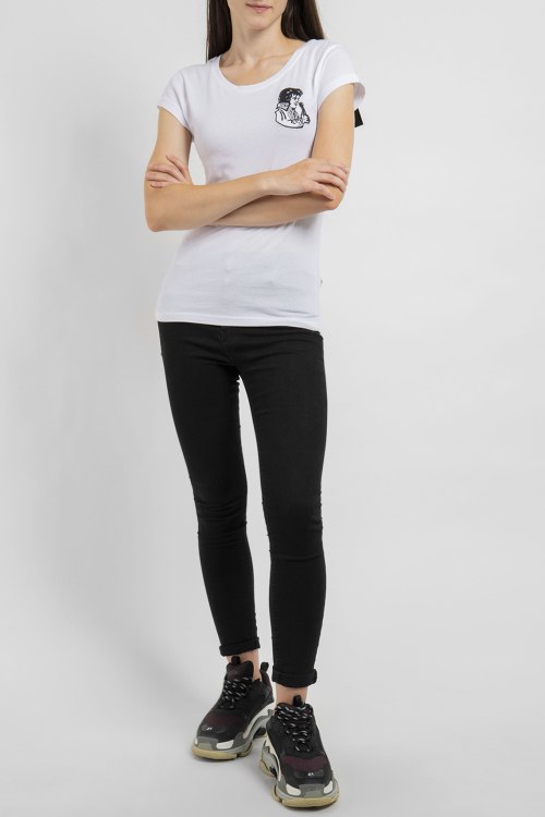 Женская белая хлопковая футболка от Ko Samui (Ко Самуи). Принт Elvis на груди, круглый вырез горловины, короткий рукав.