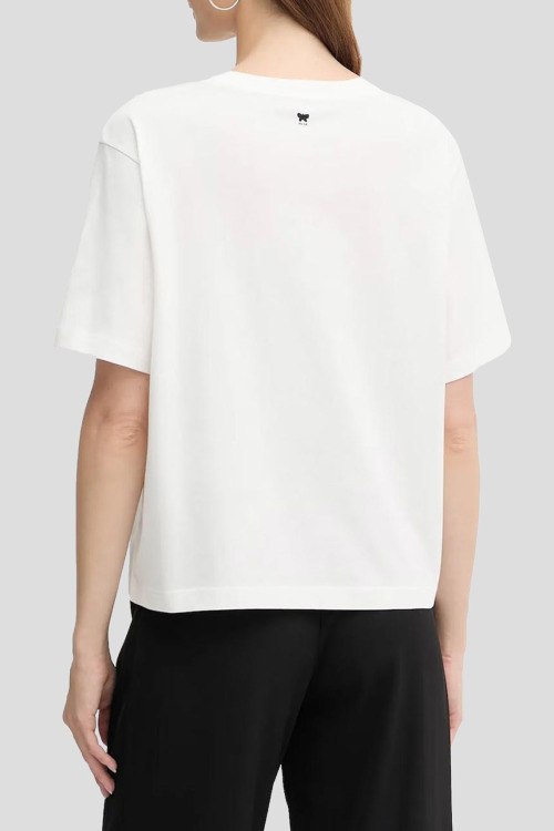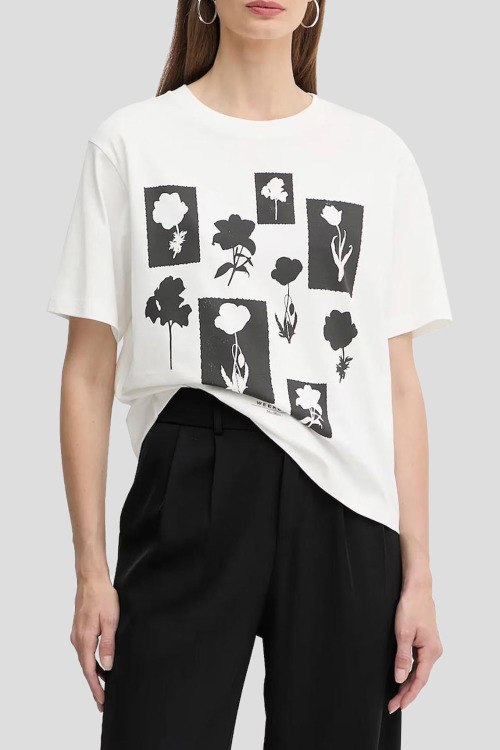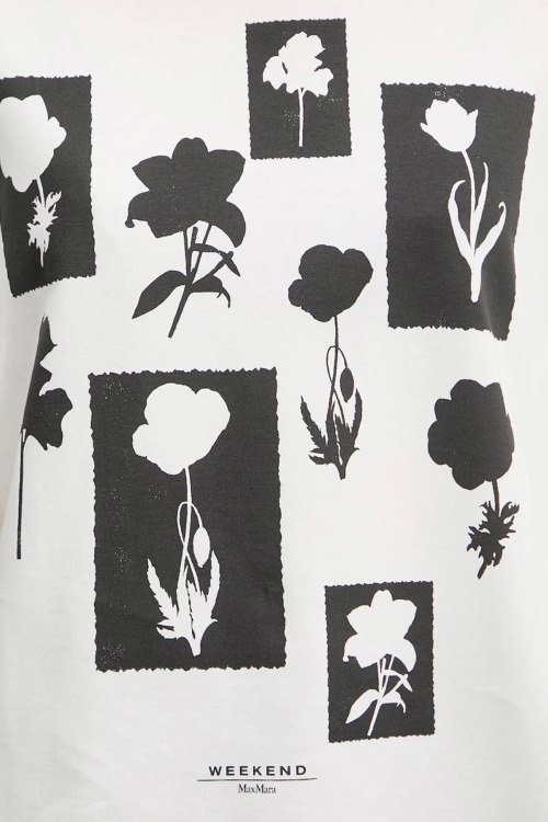 Детали: Женская белая хлопковая футболка Acline от Max Mara Weekend (Макс Мара Викенд). Цветочный принт, круглый вырез горловины, короткий рукав, классическая длина