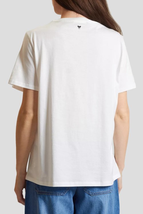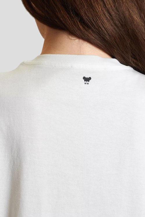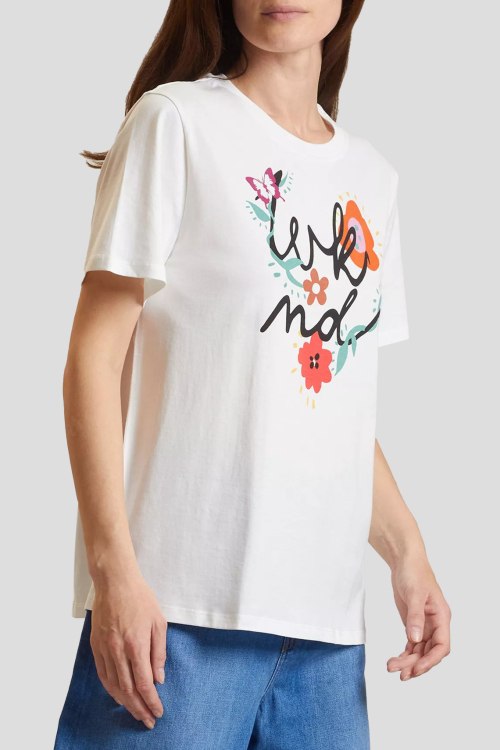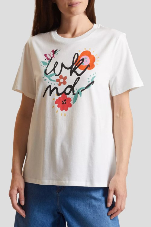 Детали: Женская белая футболка из хлопка от Max Mara (Макс Мара). Круглый вырез горловины, короткие рукава, цветочный принт на груди