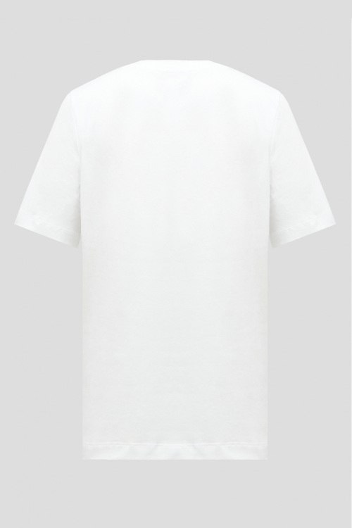 Детали: Женская белая футболка из хлопка от Rich & Royal (Рич энд Роял). Классическая длина, круглый вырез горловины, короткие рукава, модель декорирована принтом спереди. Замеры: длина рукава: короткий, для размера S - 22 см, обхват груди: для размера S - 98 см, обхват талии: для размера S - 92 см, длина изделия по среднему шву спинки от горловины: для размера S - 53 см