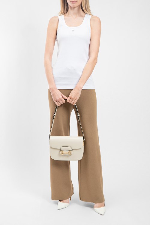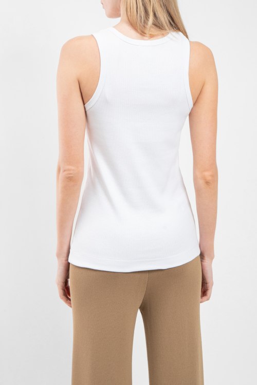 Женская белая хлопковая майка от Pinko (Пинко). Модель без рукавов, дизайн в рубчик, логотип на груди, круглый вырез, классическая длина.
