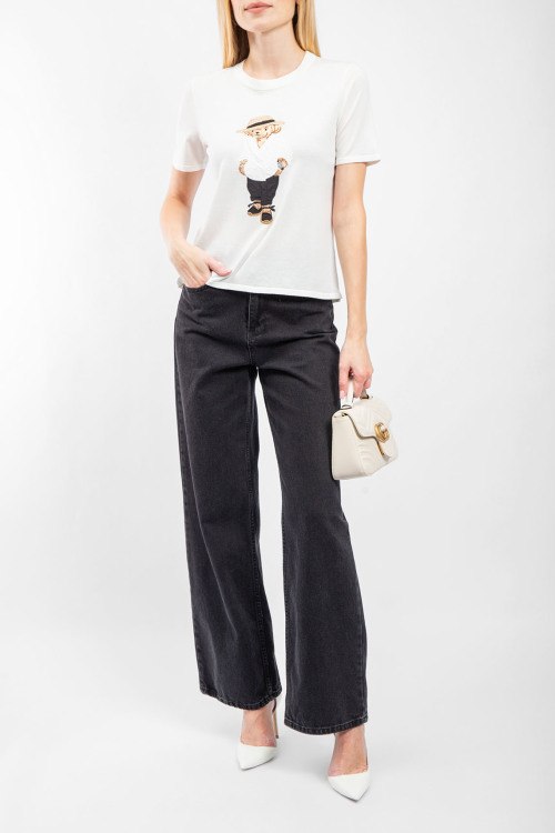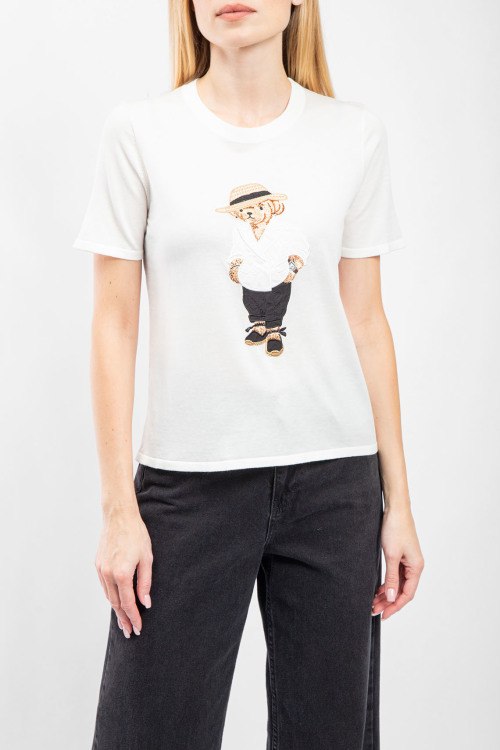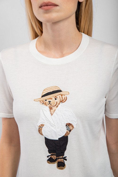 Женская белая хлопковая футболка Polo Bear от Ralph Lauren (Ральф Лорен). Вышивка на груди, круглый вырез горловины, короткий рукав, классическая длина.