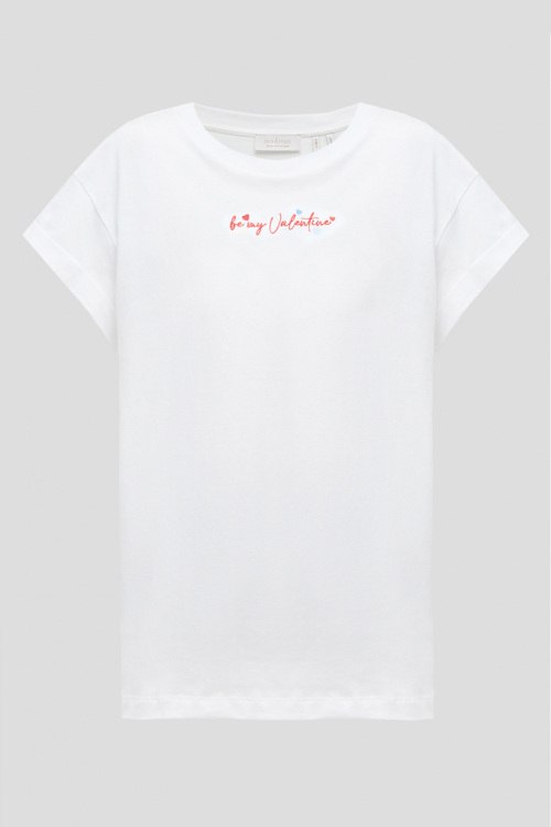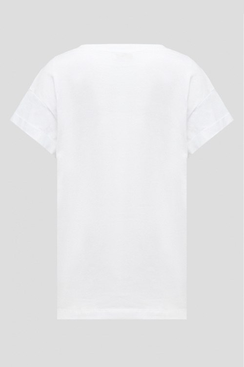 Детали: Женская белая футболка из хлопка от Rich & Royal (Рич энд Роял). Классическая длина, круглый вырез горловины, короткие рукава, вышивка на груди с кристаллами. Замеры: длина рукава: короткий, для размера S - 9 см, обхват груди: для размера S - 102 см, обхват талии: для размера S - 100 см, длина изделия по среднему шву спинки от горловины: для размера S - 59,5 см