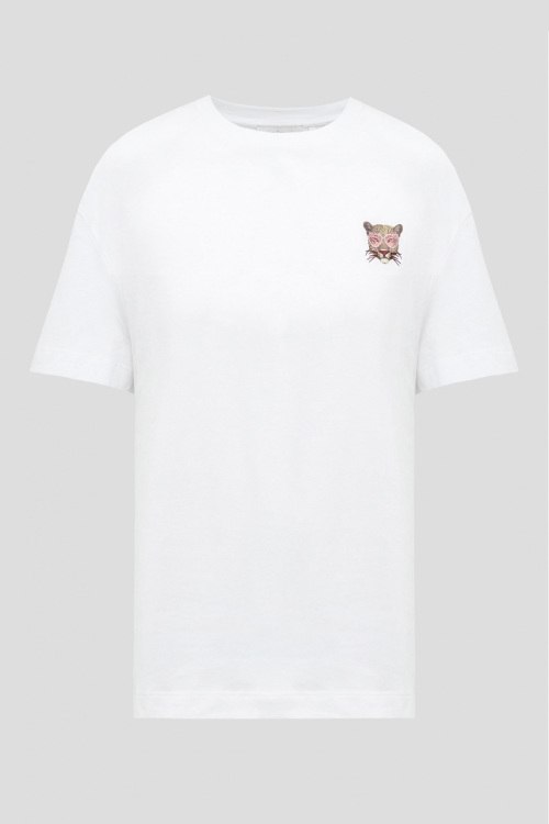 Детали: Женская белая футболка из хлопка от Rich & Royal (Рич энд Роял). Классическая длина, круглый вырез горловины, короткие рукава, модель декорирована аппликацией из кристаллов на груди. Замеры: длина рукава: короткий, для размера S - 16,5 см, обхват груди: для размера S - 98 см, обхват талии: для размера S - 96 см, длина изделия по среднему шву спинки от горловины: для размера S - 51,5 см