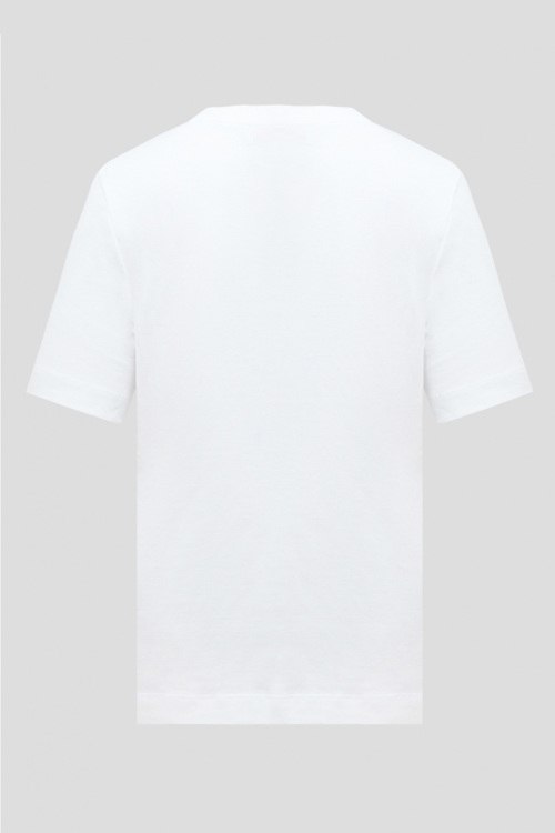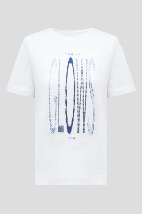 Детали: Женская белая футболка из хлопка от Rich & Royal (Рич энд Роял). Круглый вырез горловины, короткие рукава, модель декорирована принтом с кристаллами. Замеры: длина рукава: короткий, для размера S - 22 см, обхват груди: для размера S - 92 см, обхват талии: для размера S - 88 см, длина изделия по среднему шву спинки от горловины: для размера S - 54 см
