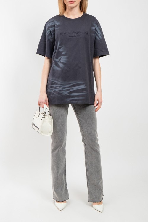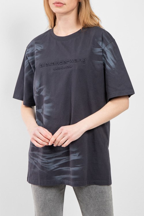 Женская черная хлопковая футболка от Alexander Wang (Александр Ванг). Логотип на груди, круглый вырез горловины, фасон oversize, короткий рукав, удлиненная длина.