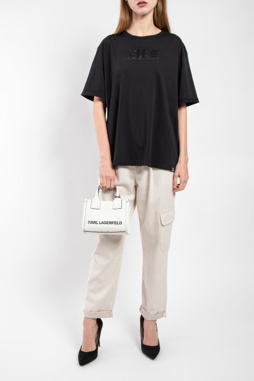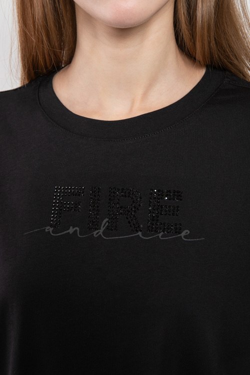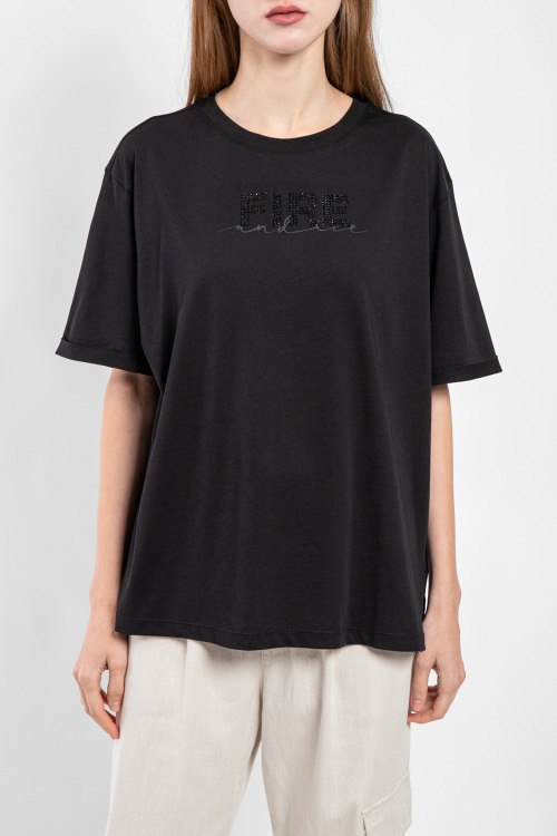 Детали: Женская черная хлопковая футболка Cabela от Bogner (Богнер). Логотип из кристаллов на груди, круглый вырез горловины, короткий рукав, классическая длина